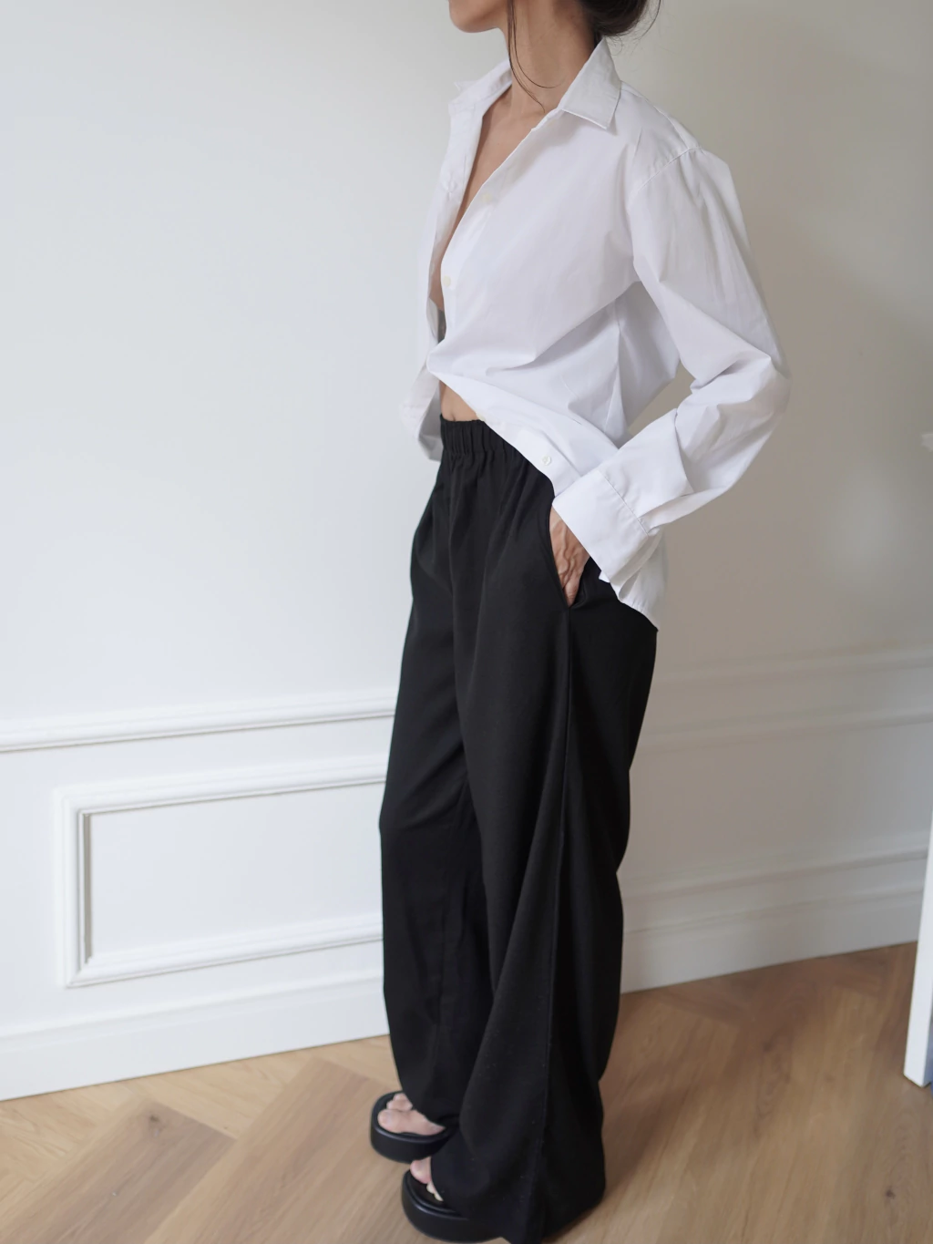 Produzida em linho misto, ela tem cintura alta com elástico e bolsos invisíveis laterais. Elegantíssima, uma grande aliada para ser sua favorita de todos os dias.